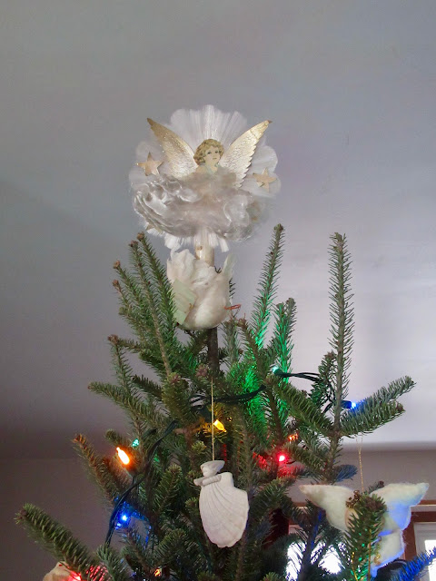 Our traditional tree topper is a very old angel ornament named Mirandi made of spun glass, an early word for fiberglass. It was given to me by my parents who had it for years. The earliest photo I could find is from 1957 but I think it is older. Its box has no date printed by the manufacturer, although I found one identical online stating it was from the 1930's. But, the company may not have updated the box for years, so who knows. The company was founded in 1888 in Manitowoc, WI as a early ornament and toy maker. It was sold and reorganized as the National Tinsel Co. in 1918 and ended the toy program. Today, the company is known as Santa's Best, located in West Chester, PA.