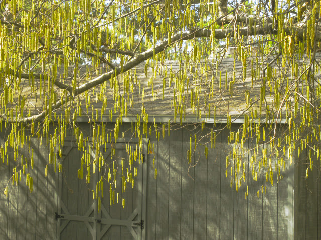 A gorgeous, clear day. The daffs are in full bloom. I began my Spring chores: sumping out the 4" of rain from the pool winter cover; raked my neighbors oak leaves from the deck, around the raised bed; raked the branches from the back yard, put fresh batteries in the outside clocks and set the correct time; ran the gas out of the snow blower and put it away (hopefully, not jinxing us) and put out the deck table and chairs.